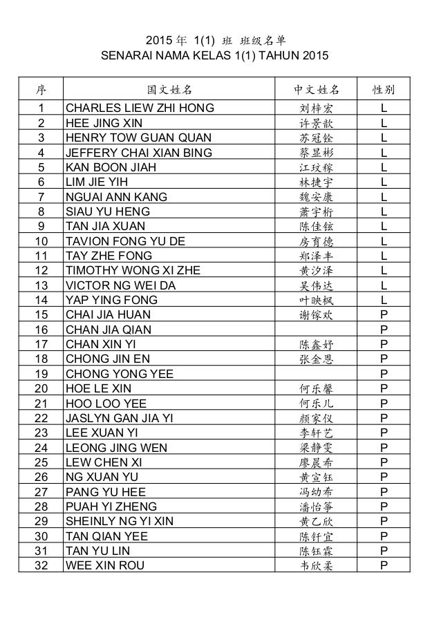 居銮博爱学校 2015年学生名单 Senarai Nama Murid Tahun 1 2015 Sjkc Pa via www.slideshare.net